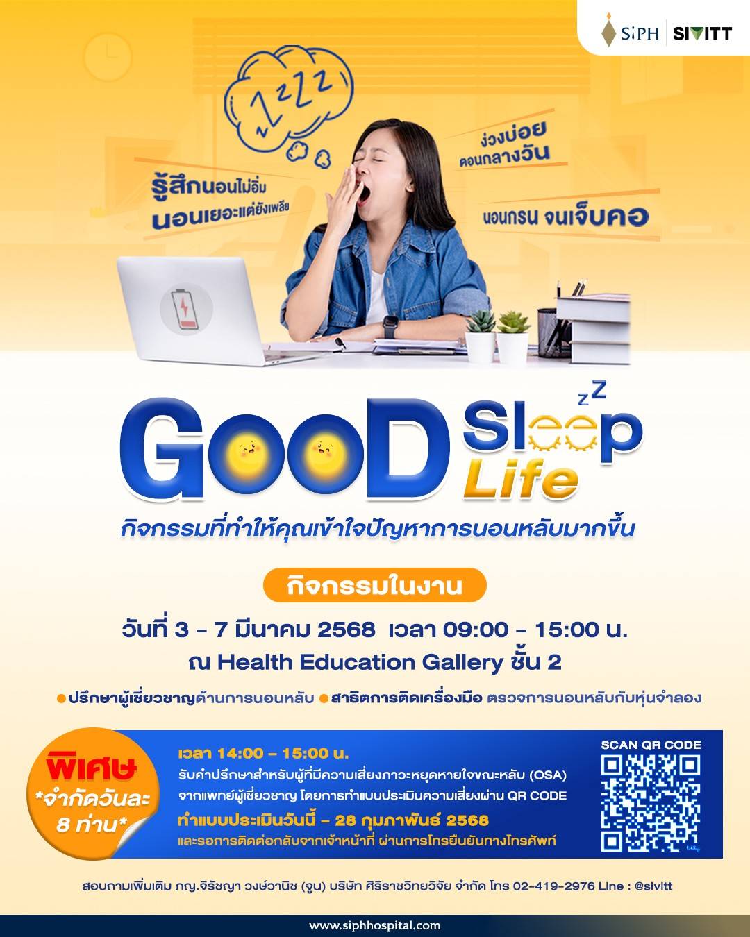 โรงพยาบาลศิริราช จัดงาน Good Sleep Good Life วันที่ 3 – 7 มีนาคม 2568 เวลา 09.00 – 15.00 น. โรงพยาบาลศิริราช ปิยมหาราชการุณย์ ณ Health Education Gallery ชั้น 2