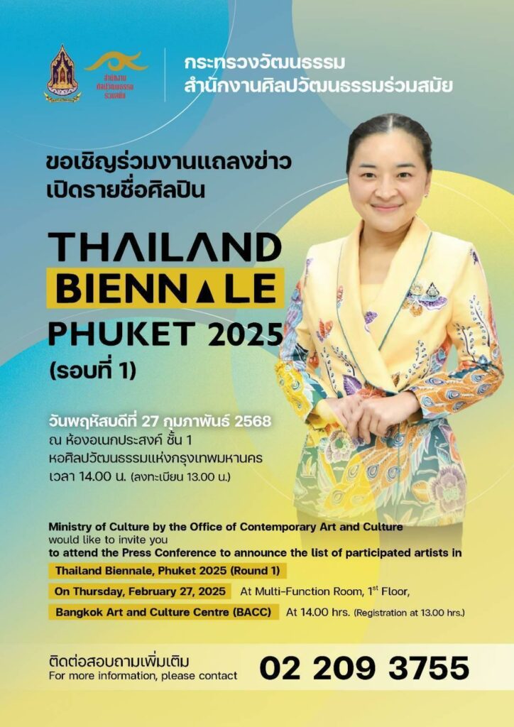 กระทรวงวัฒนธรรม เชิญร่วมรับฟังแถลงข่าว เปิดรายชื่อศิลปิน THAILAND BIENNALE, PHUKET 2025