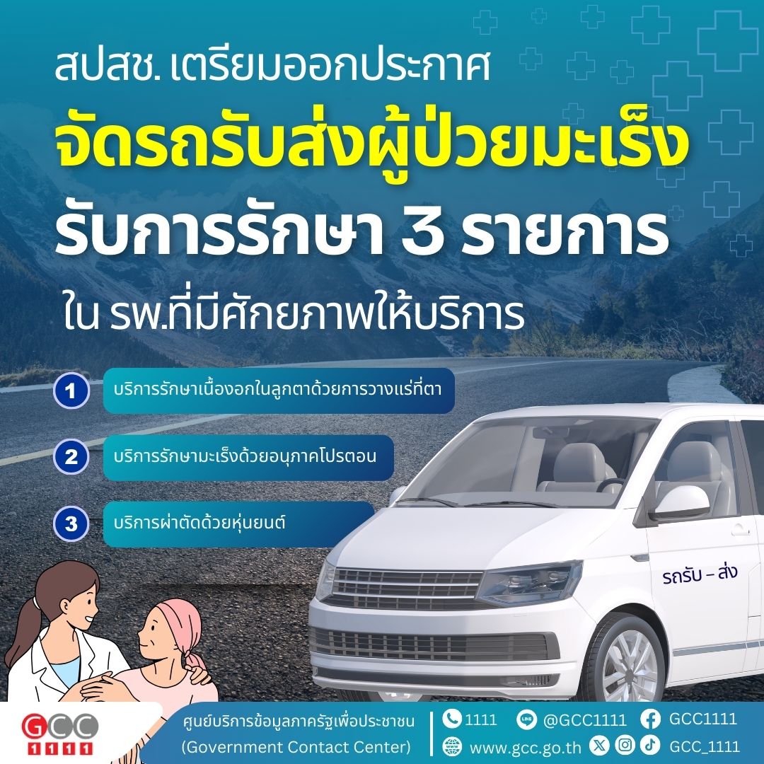 สปสช. เตรียมออกประกาศจัดรถรับส่งผู้ป่วยมะเร็ง รับการรักษา 3 รายการ ใน รพ.ที่มีศักยภาพให้บริการ