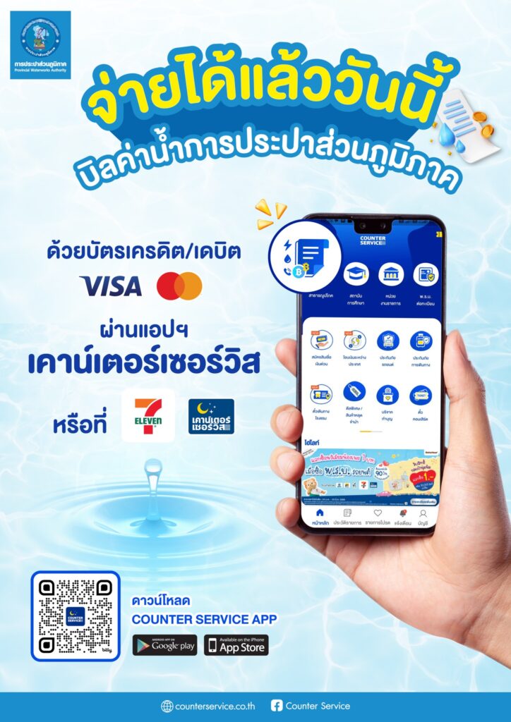 การประปาส่วนภูมิภาค แนะนำจ่ายบิลค่าน้ำประปา ผ่านบัตรเครดิต/เดบิตได้แล้ว