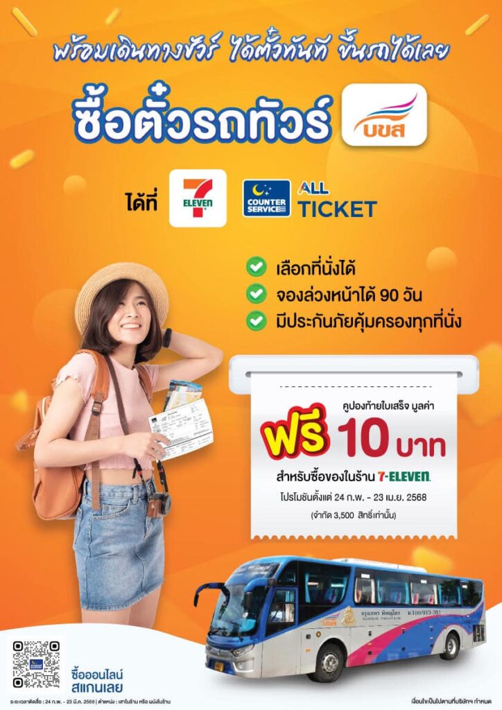 บขส. แนะนำลูกค้าซื้อตั๋วโดยสาร บขส. ที่ร้าน 7-Eleven ทุกสาขา รับฟรีคูปองท้ายใบเสร็จ มูลค่า 10 บาท ข่าวสารกิจกรรม บขส. แนะนำลูกค้าซื้อตั๋วโดยสาร บขส. ที่ร้าน 7-Eleven ทุกสาขา รับฟรีคูปองท้ายใบเสร็จ มูลค่า 10 บาท บริษัท ขนส่ง จำกัด แนะนำลูกค้าซื้อตั๋วโดยสาร บขส. ที่ร้าน 7-Eleven ทุกสาขา รับฟรี คูปองท้ายใบเสร็จ มูลค่า 10 บาท จำกัด 3,500 สิทธิ์ แจกคูปองตั้งแต่วันที่ 24 กุมภาพันธ์ – 23 เมษายน 2568 ใช้คูปองได้ถึงวันที่ 30 เมษายน 2568 หมายเหตุโปรโมชันสำหรับลูกค้าซื้อตั๋วรถทัวร์ที่ร้าน 7-Eleven เท่านั้นเงื่อนไขเป็นไปตามที่บริษัทฯ กำหนด ที่มา : https://citly.me/f12OC Post Views: 5 FacebookFacebookXTwitterLINELine