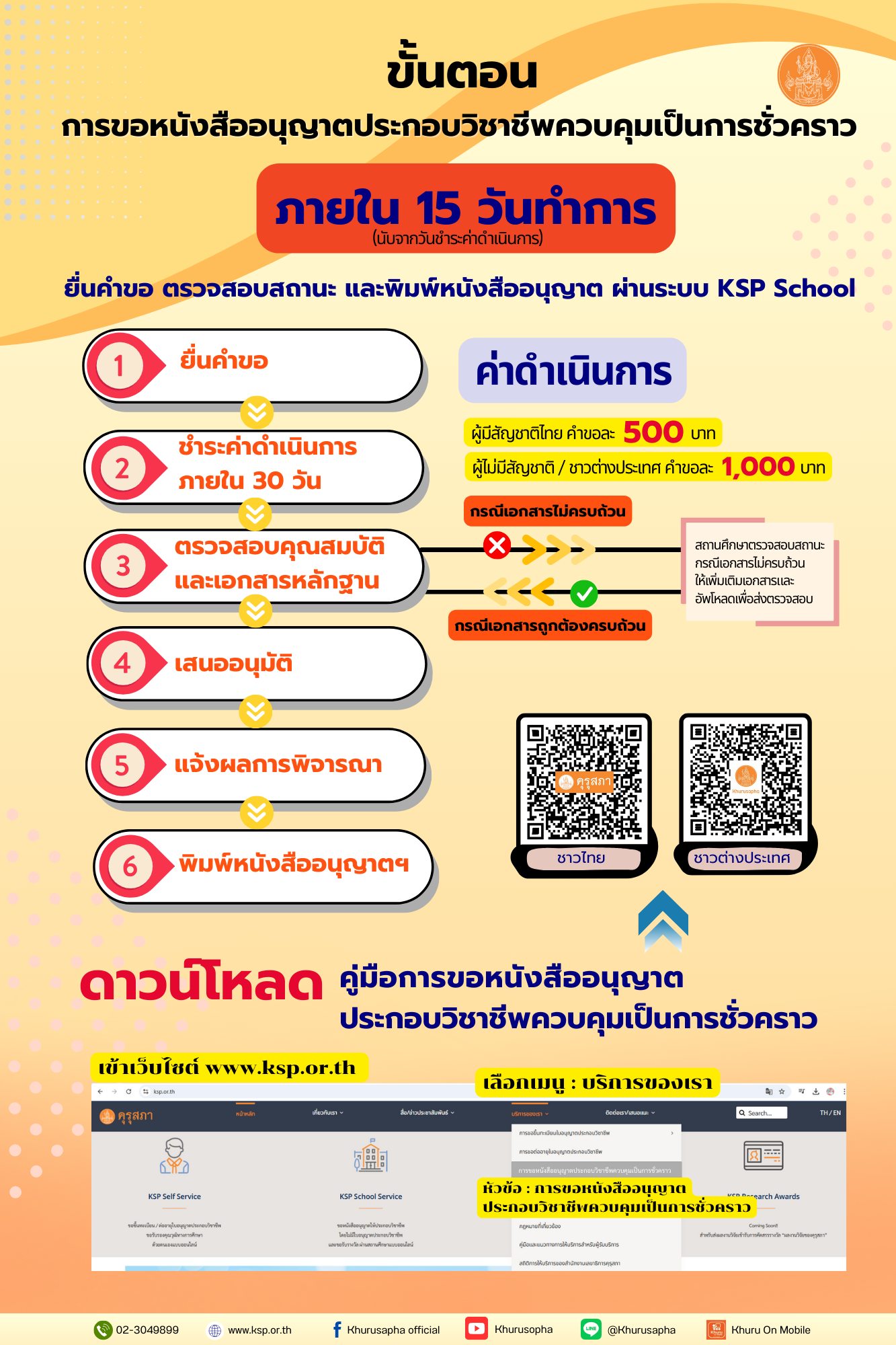 สำนักงานเลขาธิการคุรุสภา แนะนำขั้นตอนการขอหนังสืออนุญาตประกอบวิชาชีพควบคุมเป็นการชั่วคราว