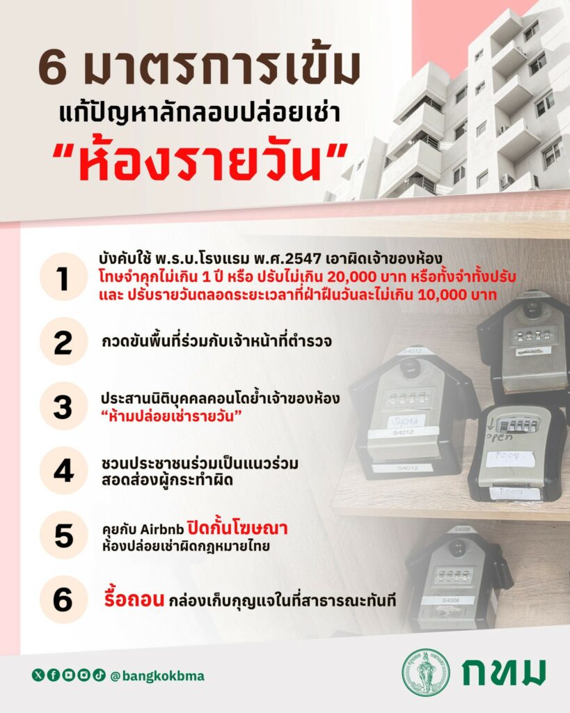 “มาตรการเหล่านี้จะช่วยลดปัญหาการปล่อยเช่ารายวันผิดกฎหมายและรักษาความปลอดภัยของชุมชน” โฆษกของ กทม. กล่าว