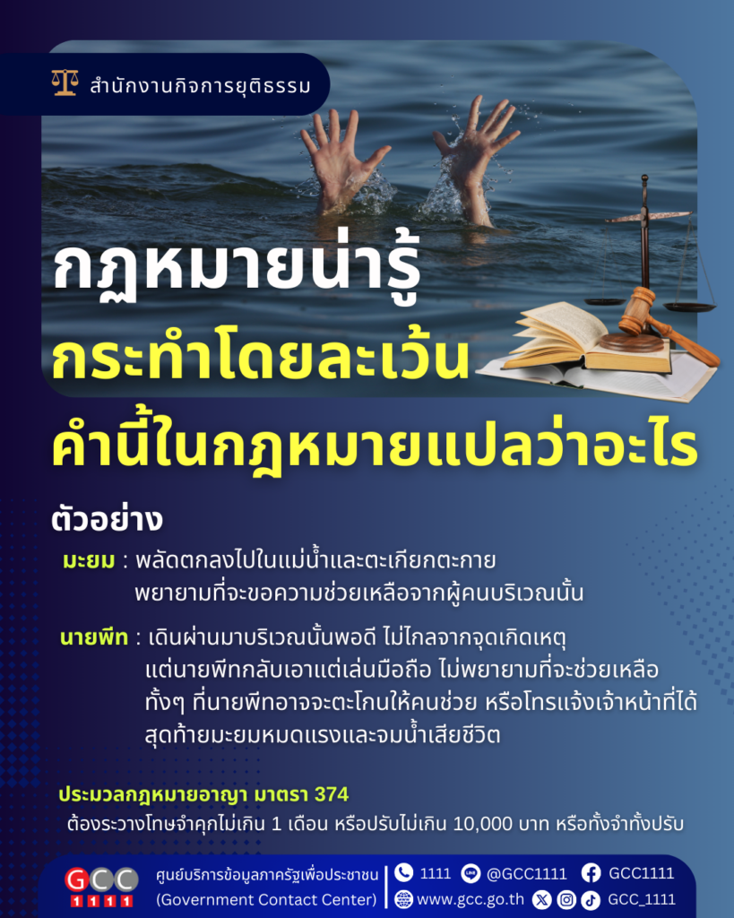 สำนักงานกิจการยุติธรรม แนะนำกฏหมายน่ารู้ เรื่อง กระทำโดยละเว้น คำนี้ในกฎหมายแปลว่าอะไร