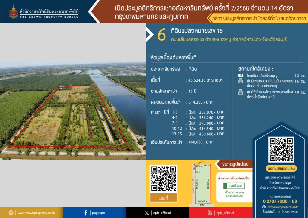 สำนักงานทรัพย์สินพระมหากษัตริย์ เปิดประมูลสิทธิการเช่า 15 ปี ที่ดินแปลงหมายเลข 16