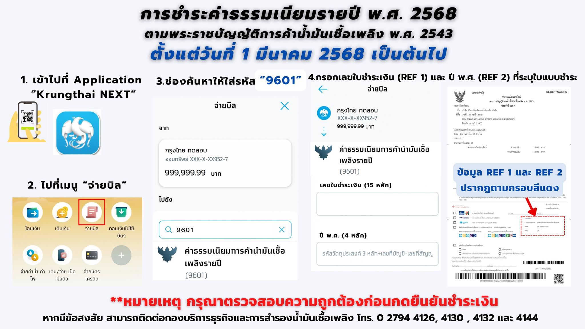หากมีข้อสงสัย สามารถติดต่อสอบถามได้ที่ : กองบริการธุรกิจและการสำรองน้ำมันเชื้อเพลิง โทร. 0 2794 4126, 4130, 4132 และ 4144