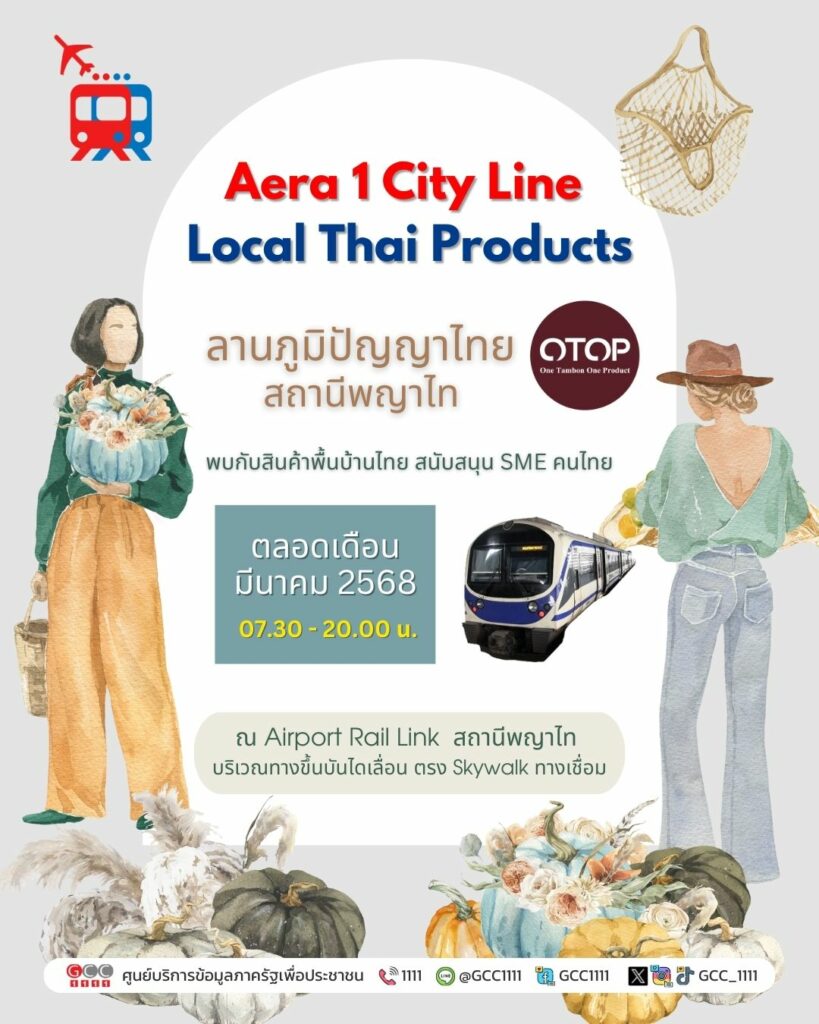 Airport Rail Link เชิญร่วมงาน Aera 1 City Line Local Thai Products ลานภูมิปัญญาไทย บัดนี้ – 31 มี.ค.68 ข่าวสารกิจกรรม Airport Rail Link เชิญร่วมงาน Aera 1 City Line Local Thai Products ลานภูมิปัญญาไทย บัดนี้ – 31 มี.ค.68 บริษัท รถไฟฟ้า ร.ฟ.ท. จำกัด เชิญร่วมงาน Aera 1 City Line Local Thai Products ลานภูมิปัญญาไทย พบการแสดงสินค้าภูมิปัญญาไทยจาก SME คนไทย ตั้งแต่บัดนี้ – 31 มีนาคม 2568 เวลา 7.30 – 20.00 น. ณ AERA 1 CITY LINE (Airport Rail Link) สถานีพญาไท บริเวณทางขึ้นบันไดเลื่อน ตรง Skywalk ทางเชื่อม ภายในงานมีสินค้าบริการงานฝีมือที่คัดเลือกของดีมาให้ผู้โดยสารได้เลือกซื้อกัน ที่มา : https://citly.me/uwCEH Post Views: 34 FacebookFacebookXTwitterLINELine