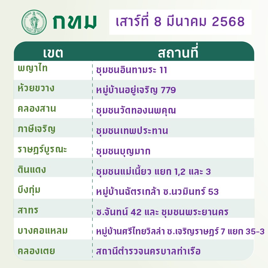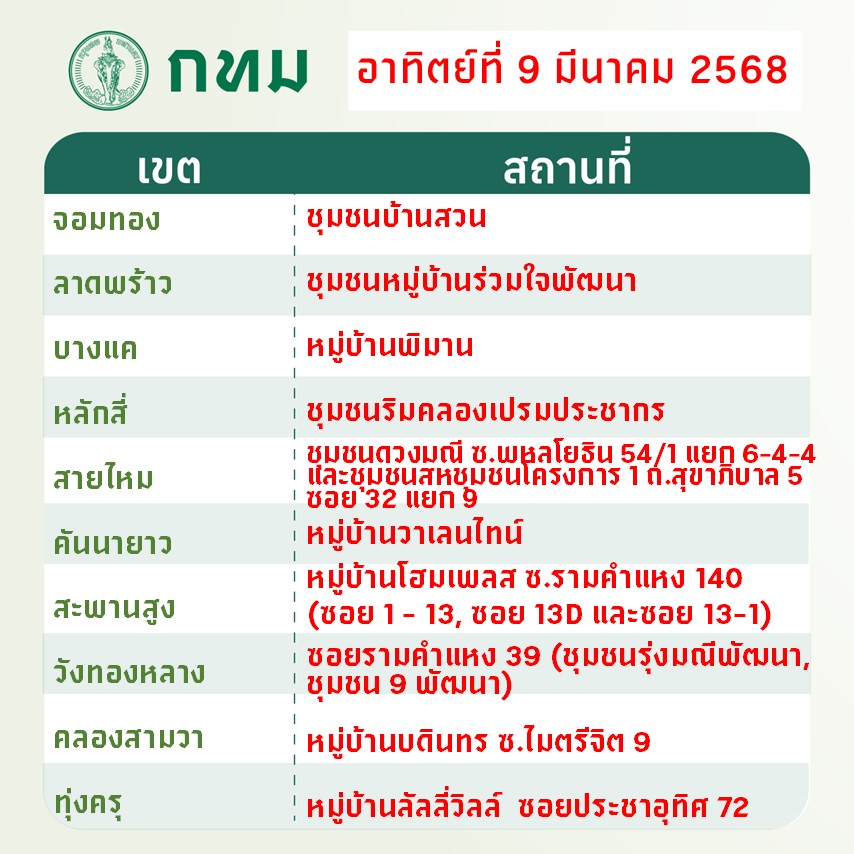 - วันเสาร์ที่ 8 มีนาคม และวันอาทิตย์ที่ 9 มีนาคม 2568