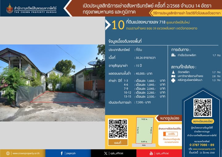- สำนักงานทรัพย์สินพระมหากษัตริย์ เปิดประมูลสิทธิการเช่า 15 ปี ที่ดินแปลงหมายเลข 718 ชุมชนทรัพย์สินใหม่