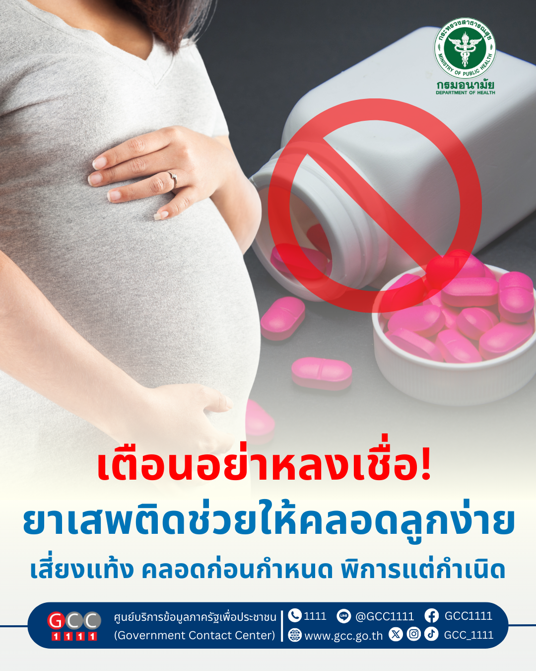กรมอนามัย เตือน อย่าหลงเชื่อ ยาเสพติดช่วยให้คลอดลูกง่าย เสี่ยงแท้ง คลอดก่อนกำหนด พิการแต่กำเนิด