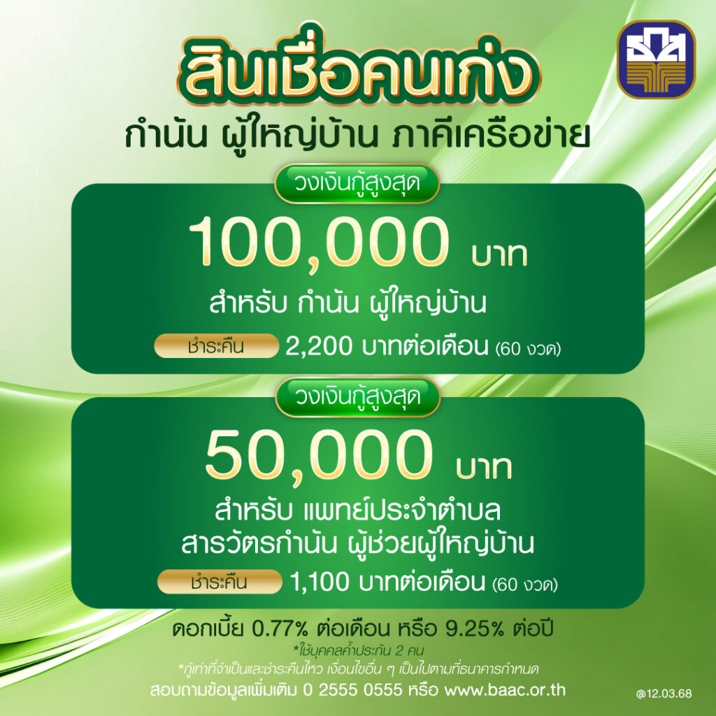- สอบถามเพิ่มเติมที่ ธ.ก.ส. ทุกสาขา หรือ Call Center 02-555-0555