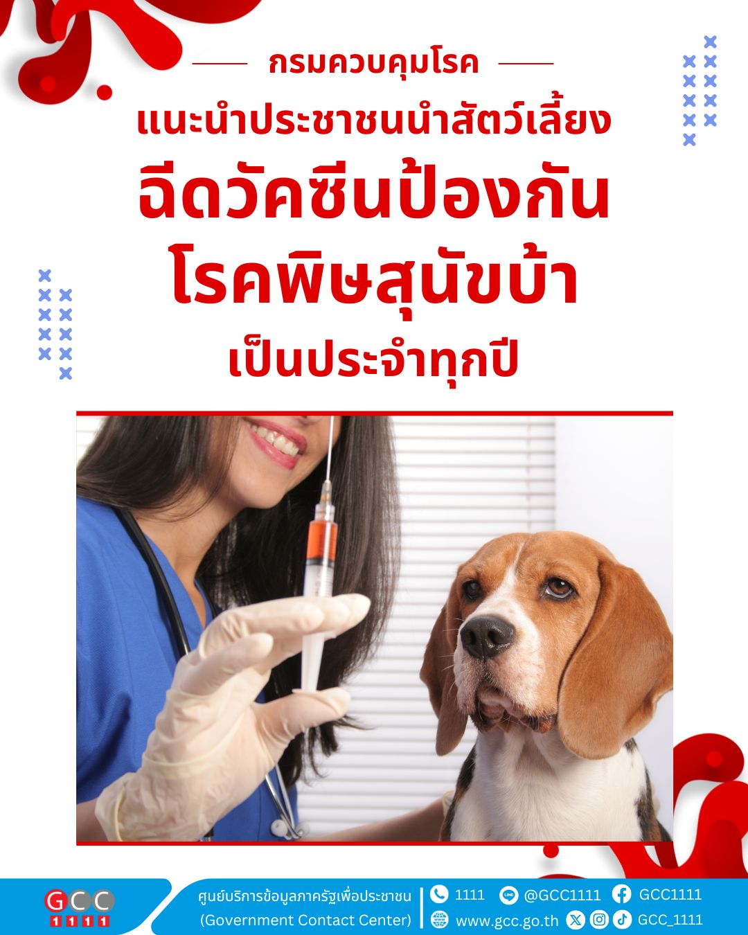 กรมควบคุมโรค แนะนำประชาชนนำสัตว์เลี้ยงไปฉีดวัคซีนป้องกันโรคพิษสุนัขบ้าเป็นประจำทุกปี