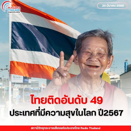 ประเทศไทยติดอันดับที่ 49 ประเทศที่มีความสุขในโลก ประจำปี 2567