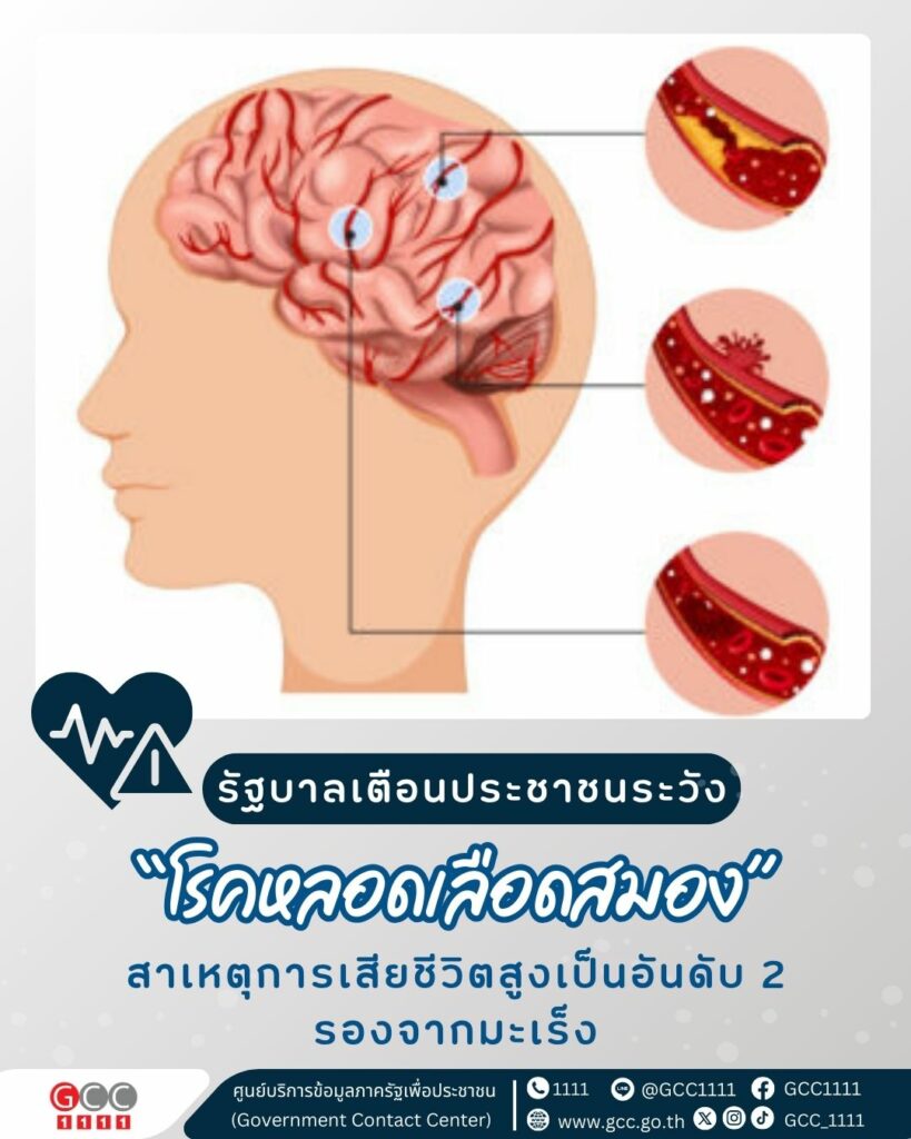รัฐบาล เตือนประชาชนระวัง “โรคหลอดเลือดสมอง” คร่าชีวิตคนไทยสูงกว่า 39,086 คน เป็นอันดับ 2 รองจากมะเร็ง แนะมุ่งสร้างศักยภาพชุมชนเป็นศูนย์กลางการดูแลสุขภาพ ด้วยแนวทาง “ป้องกันดีกว่ารักษา”