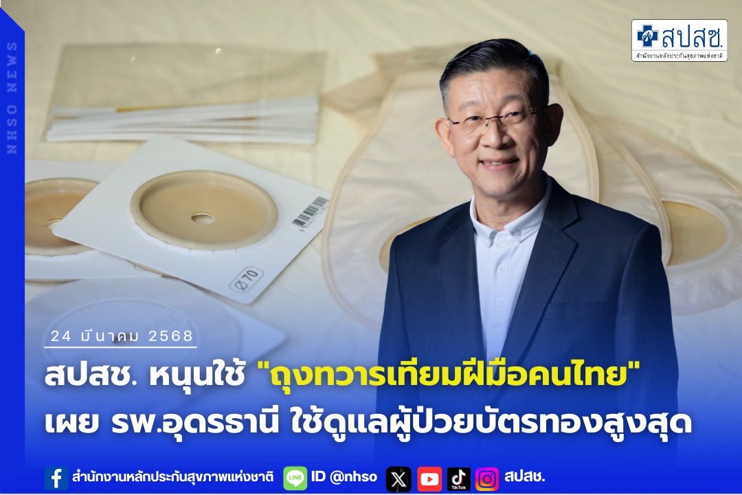 สำนักงานหลักประกันสุขภาพแห่งชาติ สนับสนุนการใช้ “นวัตกรรมถุงทวารเทียม” ผลิตภัณฑ์ที่พัฒนาขึ้นโดยคนไทย เพื่อเพิ่มคุณภาพชีวิตให้แก่ผู้ป่วยที่ต้องการการดูแลพิเศษ โดยเฉพาะในกลุ่มผู้ป่วยที่มีสิทธิบัตรทอง ช่วยประหยัดงบประมาณ ลดการนำเข้า เพิ่มการเข้าถึงบริการถุงทวารเทียมให้กับผู้ป่วย พร้อมจับมือหน่วยงานเกี่ยวข้องประเมินติดตามต่อเนื่อง