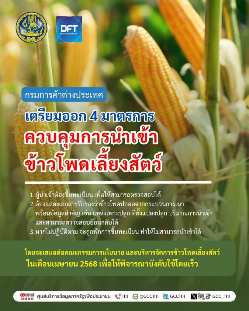 กรมการค้าต่างประเทศ เตรียมออก 4 มาตรการควบคุมการนำเข้าข้าวโพดเลี้ยงสัตว์