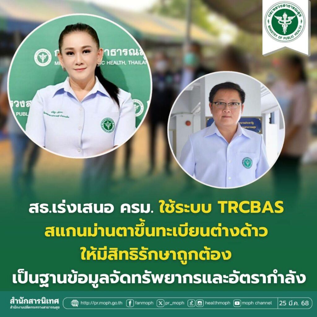 กระทรวงสาธารณสุข เร่งเสนอ ครม. พิจารณา ใช้ระบบขึ้นทะเบียนประชากรต่างด้าวผ่านระบบสแกนม่านตา (TRCBAS) เพื่อให้เข้าสู่ระบบประกันสุขภาพและได้รับสิทธิการรักษาอย่างถูกต้อง