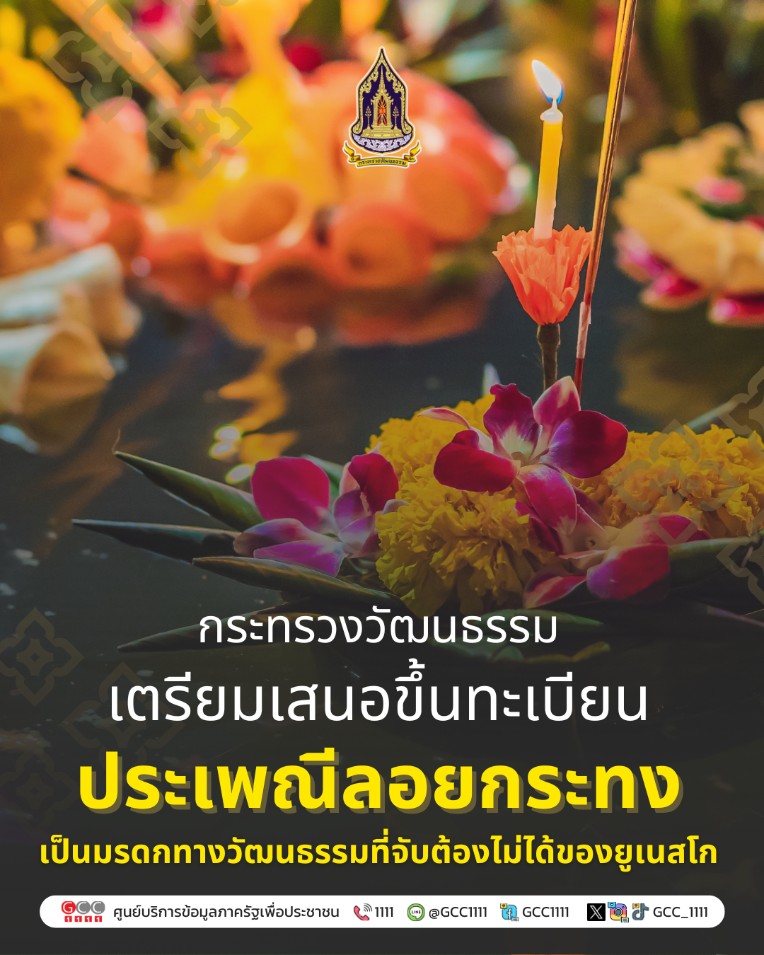 กระทรวงวัฒนธรรม เสนอขึ้นทะเบียน “ประเพณีลอยกระทงในประเทศไทย” เป็นมรดกทางวัฒนธรรมที่จับต้องไม่ได้ของยูเนสโก โดยเน้นคุณค่าทางวัฒนธรรมที่ส่งเสริมความสมานฉันท์ สร้างสรรค์เศรษฐกิจท้องถิ่น และกระตุ้นการอนุรักษ์ประเพณีและสิ่งแวดล้อม ทั้งนี้ การขึ้นทะเบียนดังกล่าวถือเป็นส่วนหนึ่งของนโยบาย “วัฒนธรรมขับเคลื่อนเศรษฐกิจ” และการส่งเสริม Soft Power ด้านเฟสติวัลเพื่อยกระดับเทศกาลไทยสู่ระดับสากล