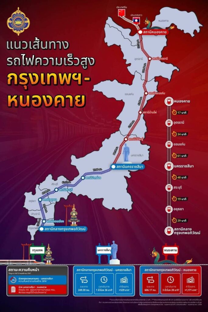 นอกจากนี้ ยังได้หารือถึงการเร่งรัดการดำเนินโครงการรถไฟความเร็วสูงไทย-จีน ระยะที่ 2 ช่วงนครราชสีมา-หนองคาย ปัจจุบันได้ออกแบบงานโยธาแล้วเสร็จ และคณะรัฐมนตรีมีมติอนุมัติให้ดำเนินโครงการแล้วเมื่อวันที่ 4 ก.พ. 68 ซึ่งที่ประชุมได้เร่งรัดให้การรถไฟแห่งประเทศไทย (รฟท.) ดำเนินการก่อสร้างได้ภายในปี 2568 เพื่อเป็นการเฉลิมฉลองในโอกาสครบรอบ 50 ปีการสถาปนาความสัมพันธ์ทางการทูตระหว่างไทย – จีน