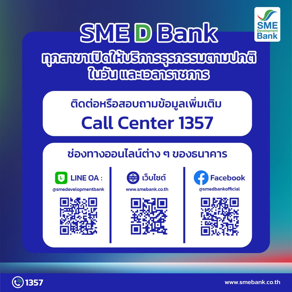 SME D Bank แจ้งทุกสาขาทั่วประเทศ เปิดให้บริการธุรกรรมตามปกติ ข่าวสารกิจกรรม SME D Bank แจ้งทุกสาขาทั่วประเทศ เปิดให้บริการธุรกรรมตามปกติ ธนาคารพัฒนาวิสาหกิจขนาดกลางและขนาดย่อมแห่งประเทศไทย แจ้งทุกสาขาทั่วประเทศ เปิดให้บริการธุรกรรมตามปกติ ในวันที่ 31 มีนาคม 2568 เป็นต้นไป ตามเวลาราชการ สามารถติดต่อหรือสอบถามข้อมูลเพิ่มเติมได้ผ่าน Call Center 1357 หรือช่องทางออนไลน์ของธนาคาร : LINE OA : @smedevelopmentbank เว็บไซต์ www.smebank.co.th และแฟนเพจเฟซบุ๊กของธนาคาร ที่มา : https://citly.me/oGwJi Post Views: 15 FacebookFacebookXTwitterLINELine