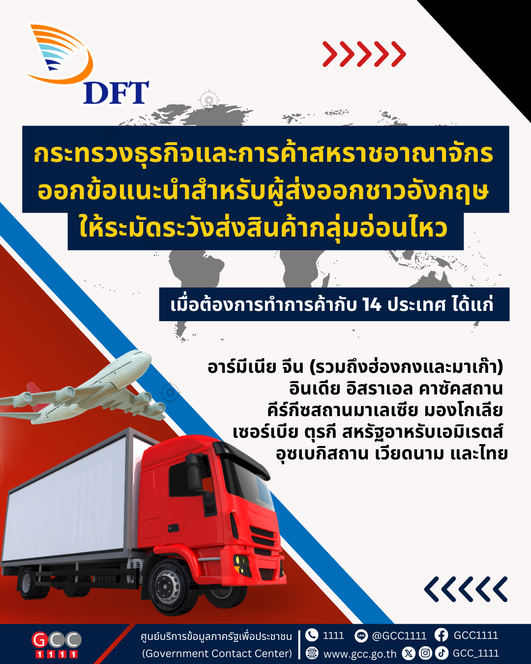 กรมการค้าต่างประเทศ แจ้ง UK ออกข้อแนะนำสำหรับผู้ส่งออกชาวอังกฤษให้ระมัดระวังส่งสินค้ากลุ่มอ่อนไหว