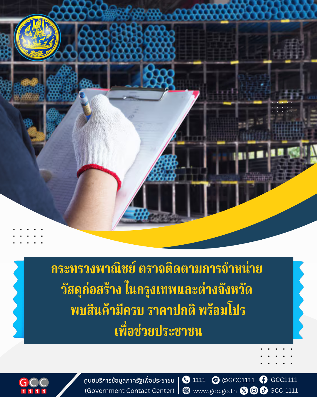 กระทรวงพาณิชย์ ดำเนินการตรวจติดตามการจำหน่าย วัสดุก่อสร้าง ในกรุงเทพและต่างจังหวัด
