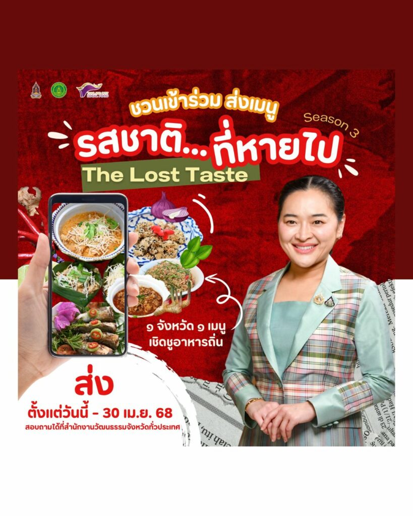 กรมส่งเสริมวัฒนธรรม ขอเชิญร่วมส่งเมนูอาหารถิ่น คัดเลือกในโครงการ “1 จังหวัด 1 เมนู เชิดชูอาหารถิ่น” ข่าวสารกิจกรรม กรมส่งเสริมวัฒนธรรม ขอเชิญร่วมส่งเมนูอาหารถิ่น คัดเลือกในโครงการ “1 จังหวัด 1 เมนู เชิดชูอาหารถิ่น” กรมส่งเสริมวัฒนธรรม ขอเชิญร่วมส่งเมนูอาหารถิ่น คัดเลือกในโครงการ “1 จังหวัด 1 เมนู เชิดชูอาหารถิ่น” ภายใต้แนวคิด “รสชาติ…ที่หายไป The Lost Taste” ประจำปี 2568 เพื่อค้นหา-รักษา-สืบทอด อาหารถิ่นที่ใกล้สูญหาย ให้กลับมาเป็นที่รู้จักอีกครั้ง ส่งรายละเอียดเมนูได้ตั้งแต่ บัดนี้ – 30 เมษายน 2568 สอบถามข้อมูลเพิ่มเติมได้ที่ สำนักงานวัฒนธรรมจังหวัดทั้วประเทศ ที่มา : https://url.in.th/Odnyt Post Views: 54 FacebookFacebookXTwitterLINELine