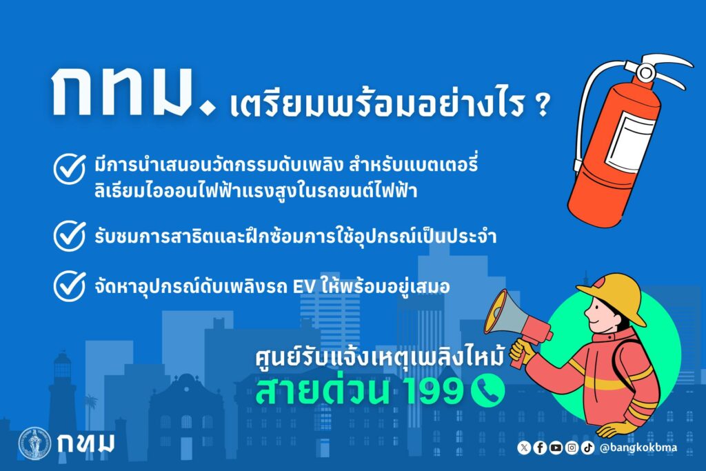 กรุงเทพมหานคร แนะนำวิธีดับไฟ หากเกิดเพลิงไหม้ รถไฟฟ้า EV