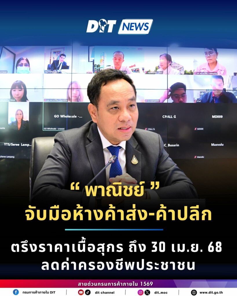 กรมการค้าภายใน จับมือห้างค้าส่ง-ค้าปลีก ตรึงราคาเนื้อสุกร ถึง วันที่ 30 เม.ย. 68 เพื่อช่วยลดค่าครองชีพประชาชน