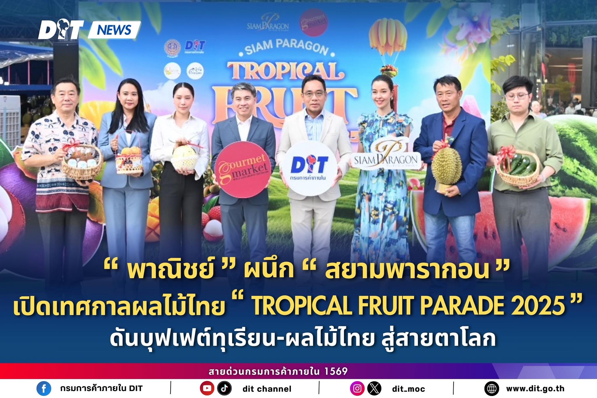 “พาณิชย์” ผนึก สยามพารากอน เปิดเทศกาลผลไม้ไทย “Tropical Fruit Parade 2025” กลางกรุง ดันบุฟเฟต์ทุเรียน-ผลไม้ไทย สู่สายตาโลก