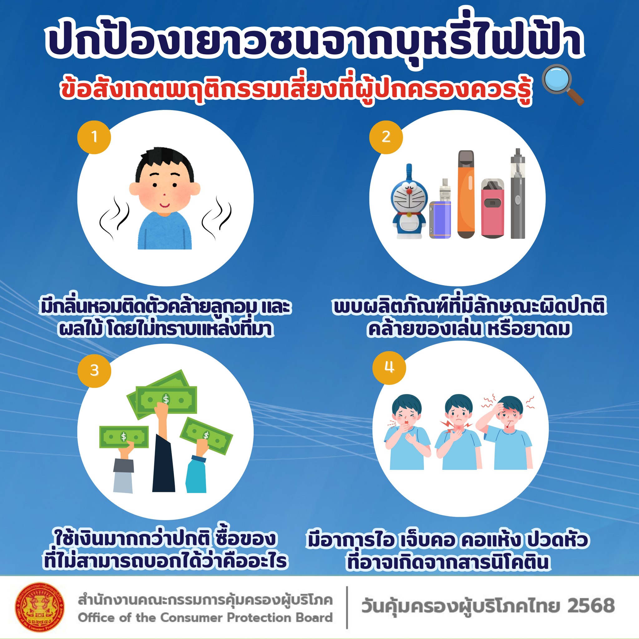 สำนักงานคณะกรรมการคุ้มครองผู้บริโภค แนะนำปกป้องเยาวชนจากบุหรี่ไฟฟ้า ข้อสังเกตพฤติกรรมเสี่ยงที่ผู้ปกครองควรรู้
