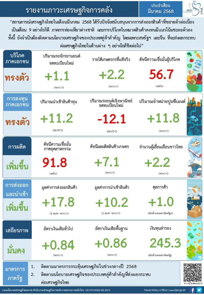สำนักงานเศรษฐกิจการคลัง รายงานภาวะเศรษฐกิจการคลังประจำเดือนมีนาคม 2568