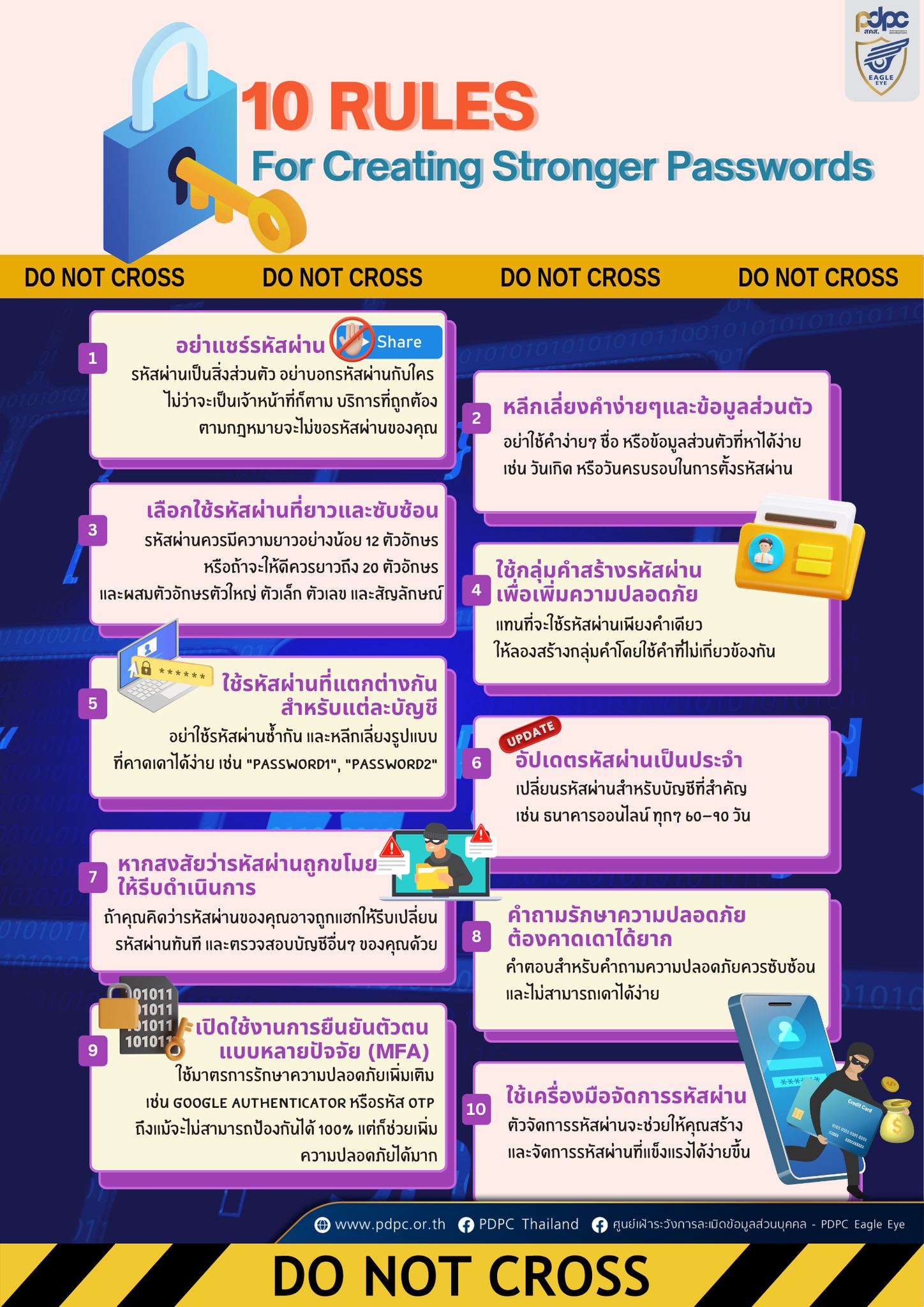 ศูนย์เฝ้าระวังการละเมิดข้อมูลส่วนบุคคล แนะนำเช็คด่วน 10 กฎเหล็กสำคัญ ในการสร้างรหัสผ่านที่ปลอดภัยและยากต่อการคาดเดา