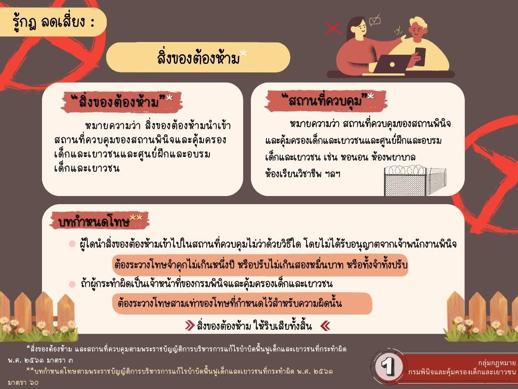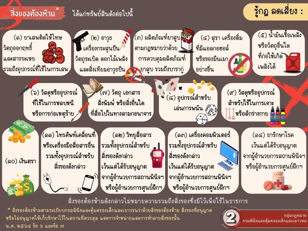 กรมพินิจและคุ้มครองเด็กและเยาวชน โดย กลุ่มกฎหมาย ขอเผยแพร่ความรู้กฎหมายเกี่ยวกับสิ่งของต้องห้ามนําเข้าสถานที่ควบคุมของสถานพินิจและคุ้มครองเด็กและเยาวชนและศูนย์ฝึกและอบรมเด็กและเยาวชน