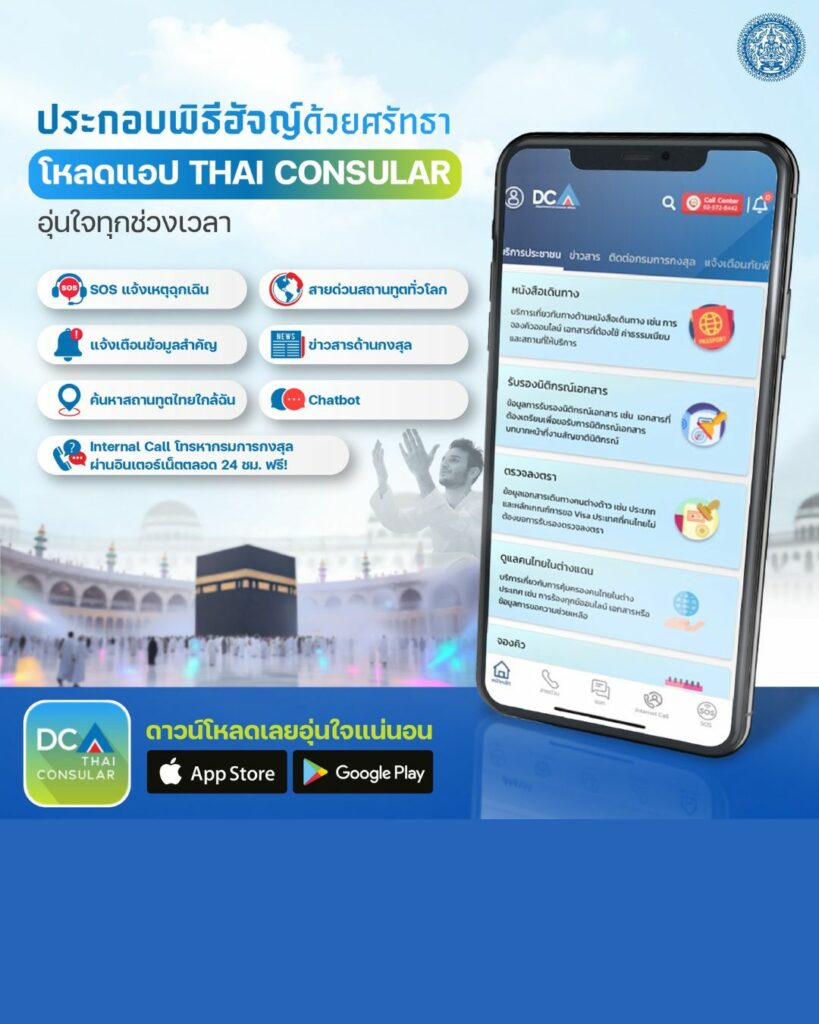 กรมการกงสุล แนะนำผู้เดินทางไปประกอบพิธีฮัจญ์ โหลดแอปฯ Thai Consular ไว้อุ่นใจทุกช่วงเวลา