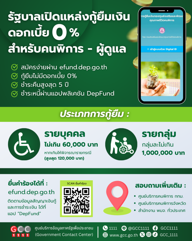 รัฐบาล เปิดให้บริการสินเชื่อไร้ดอกเบี้ยผ่านแอป “DepFund” สำหรับคนพิการและผู้ดูแล วงเงินสูงสุด 1 ล้านบาท