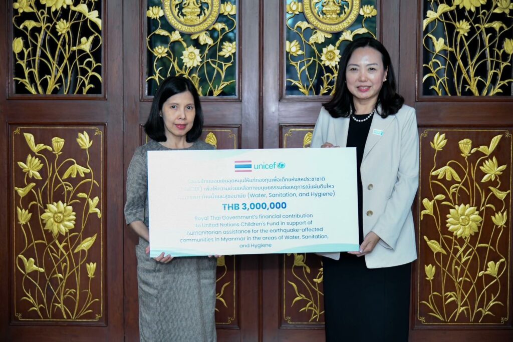 - (1) เงินอุดหนุนจำนวน 3 ล้านบาทให้แก่กองทุนเพื่อเด็กแห่งสหประชาชาติ (United Nations Children’s Fund: UNICEF) เพื่อให้ความช่วยเหลือเหตุการณ์แผ่นดินไหวในเมียนมาในด้านน้ำและสุขอนามัย (Water, Sanitation, and Hygiene: WASH) และ