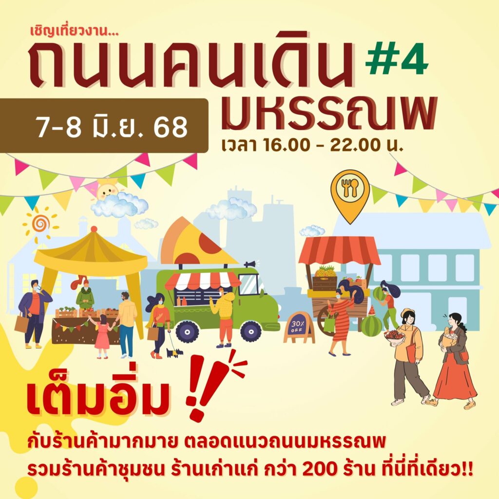 สำนักงานเขตพระนคร จัดงานถนนคนเดินมหรรณพ ครั้งที่ 4 ข่าวสารกิจกรรม สำนักงานเขตพระนคร จัดงานถนนคนเดินมหรรณพ ครั้งที่ 4 สำนักงานเขตพระนคร จัดงานถนนคนเดินมหรรณพ ครั้งที่ 4 วันที่ 7 – 8 มิถุนายน 2568 เวลา 16.00 – 22.00 น. ณ ถนนมหรรณพ ที่มา : Facebook สำนักงานเขตพระนคร Post Views: 50 FacebookFacebookXTwitterLINELine