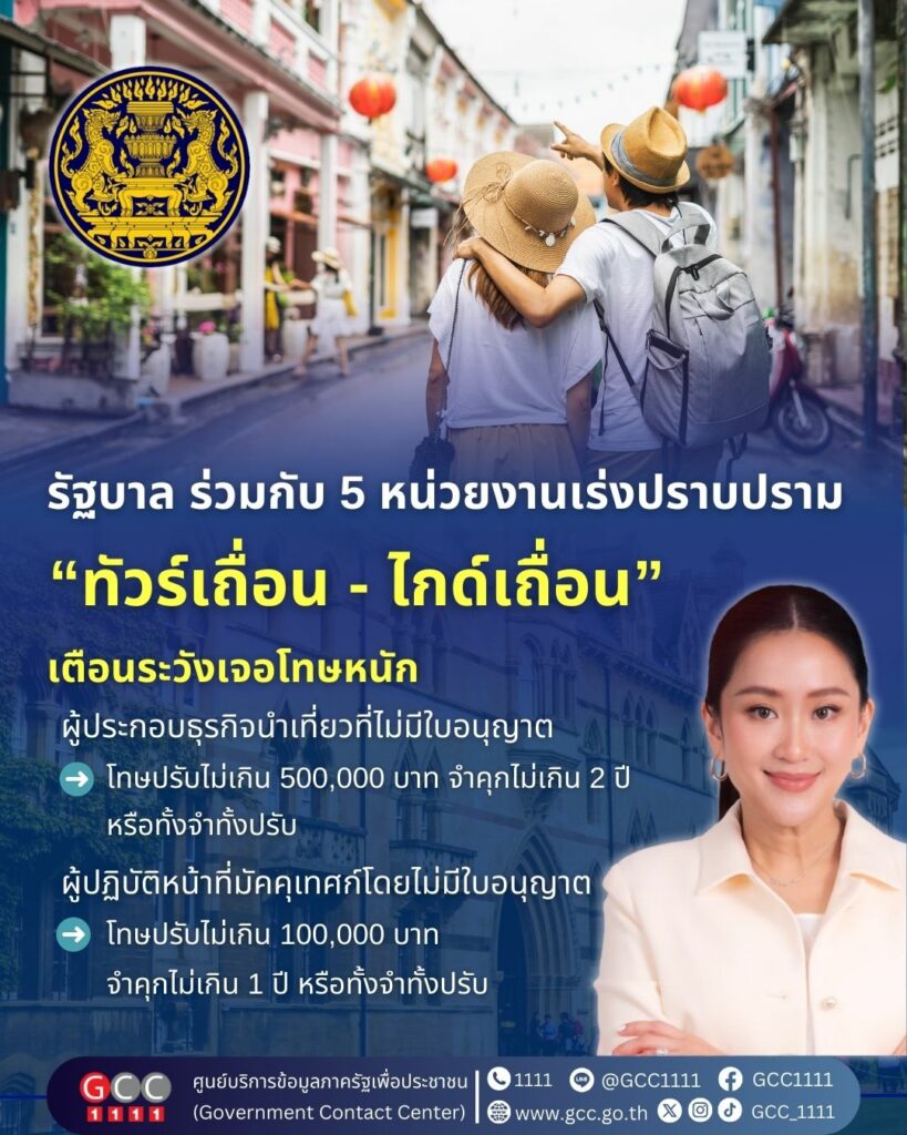 รัฐบาล เดินหน้าปราบปราม “ทัวร์เถื่อน-ไกด์เถื่อน” ทั่วประเทศ ย้ำโทษหนัก ปรับสูงสุด 5 แสน จำคุก 2 ปี พร้อมตั้งศูนย์เฉพาะกิจลุยตรวจเข้มทุกพื้นที่