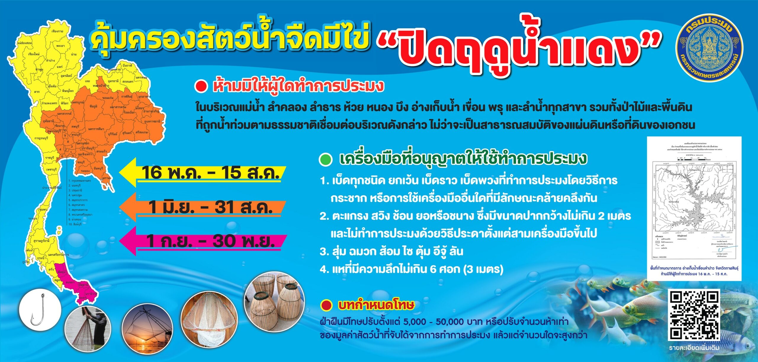 กรมประมง ออกประกาศฉบับใหม่ “ฤดูน้ำแดง 2568” คุ้มครองสัตว์น้ำจืดมีไข่ทั่วประเทศ เริ่ม 16 พ.ค. 68