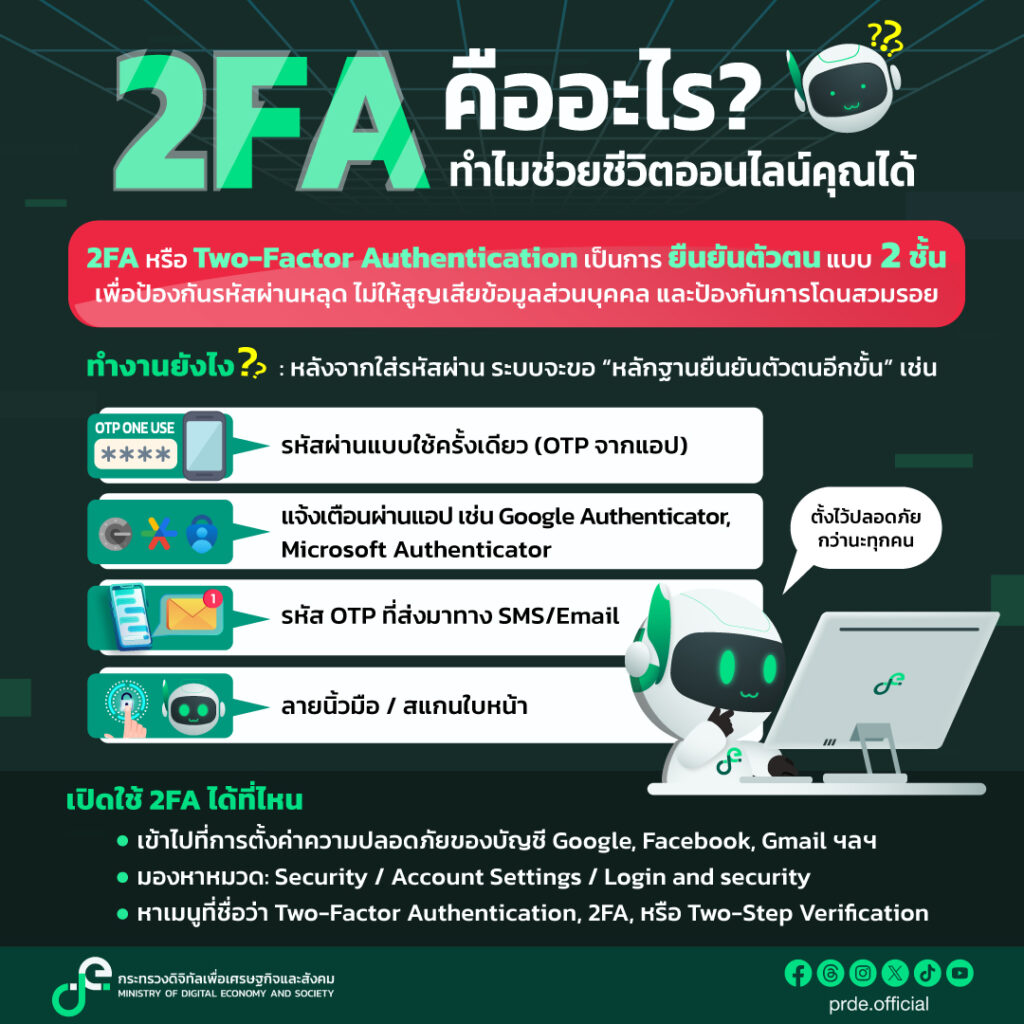 กระทรวงดิจิทัลเพื่อเศรษฐกิจและสังคม แนะนำความรู้เกี่ยวกับ 2FA