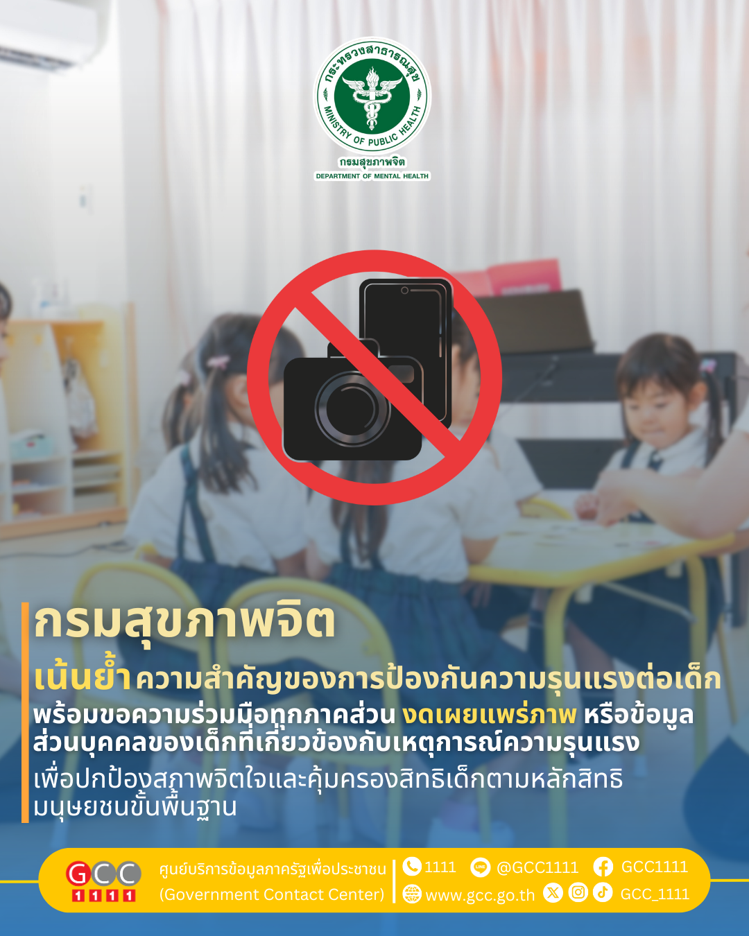 กรมสุขภาพจิต เน้นย้ำความสำคัญของการป้องกันความรุนแรงต่อเด็ก พร้อมขอความร่วมมือทุกภาคส่วนงดเผยแพร่ภาพหรือข้อมูลส่วนบุคคลของเด็กที่เกี่ยวข้องกับเหตุการณ์ความรุนแรง เพื่อปกป้องสภาพจิตใจและคุ้มครองสิทธิเด็กตามหลักสิทธิมนุษยชนขั้นพื้นฐาน ชูประเด็นการใช้แนวคิด Gentle Parents เพื่อส่งเสริมให้ผู้ดูแลเป็นแบบอย่างแก่เด็กด้วยการสร้างความเข้าใจ การสนับสนุนทางอารมณ์ และการเสริมสร้างพลังใจ ไม่แสดงออกซึ่งการใช้ความรุนแรงโดยจะเป็นแหล่งปลูกฝังพฤติกรรมความรุนแรงรวมไปถึงสร้างความหวาดกลัวในอนาคต พร้อมเชิญชวนพ่อแม่ผู้ปกครองสร้างสภาพแวดล้อมที่อ่อนโยนและปลอดภัย (Gentle Society) เอื้อต่อการเติบโตของเด็กอย่างเหมาะสม