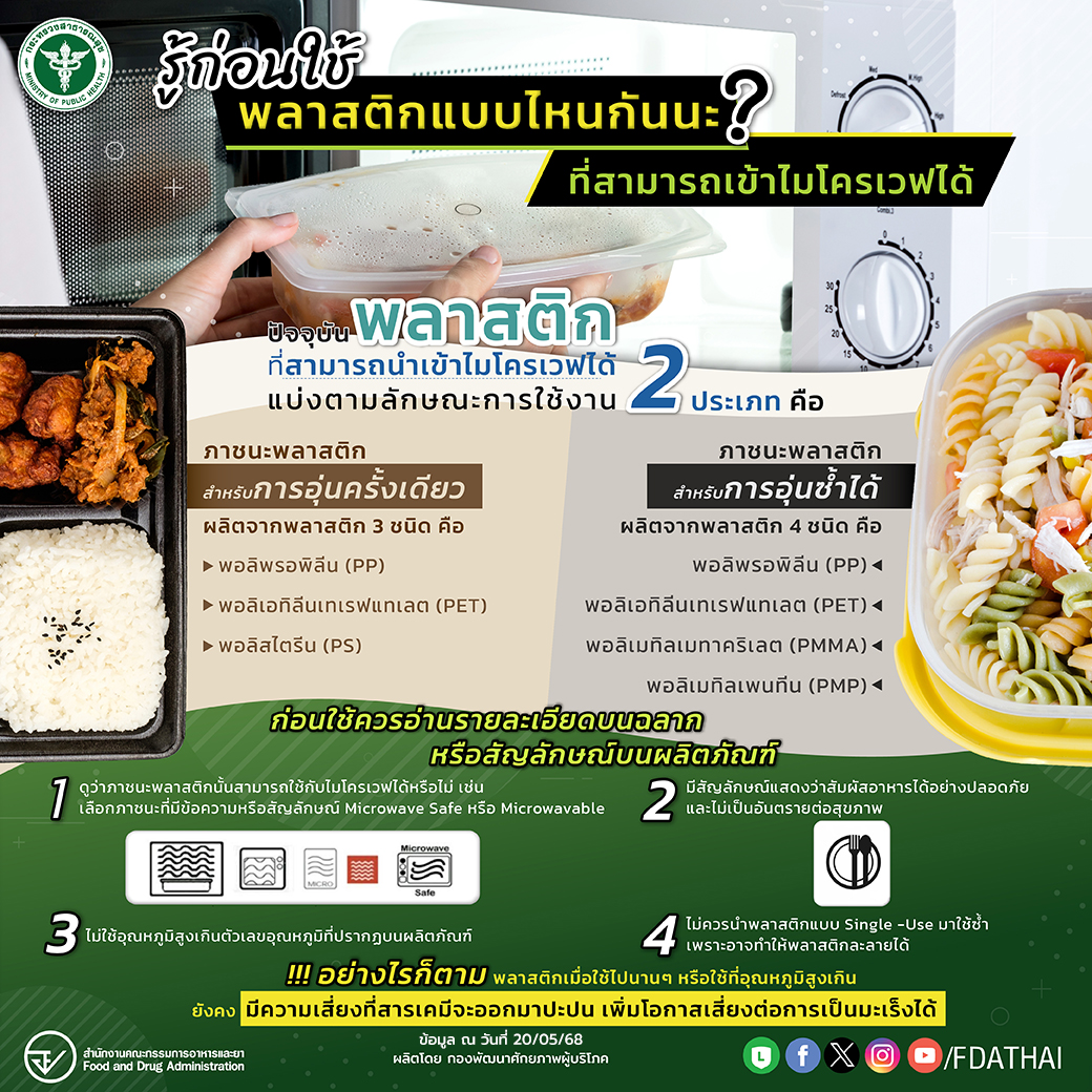 สำนักงานคณะกรรมการอาหารและยา แนะนำรู้ก่อนใช้ พลาสติกแบบไหนกันนะที่สามารถเข้าไมโครเวฟได้