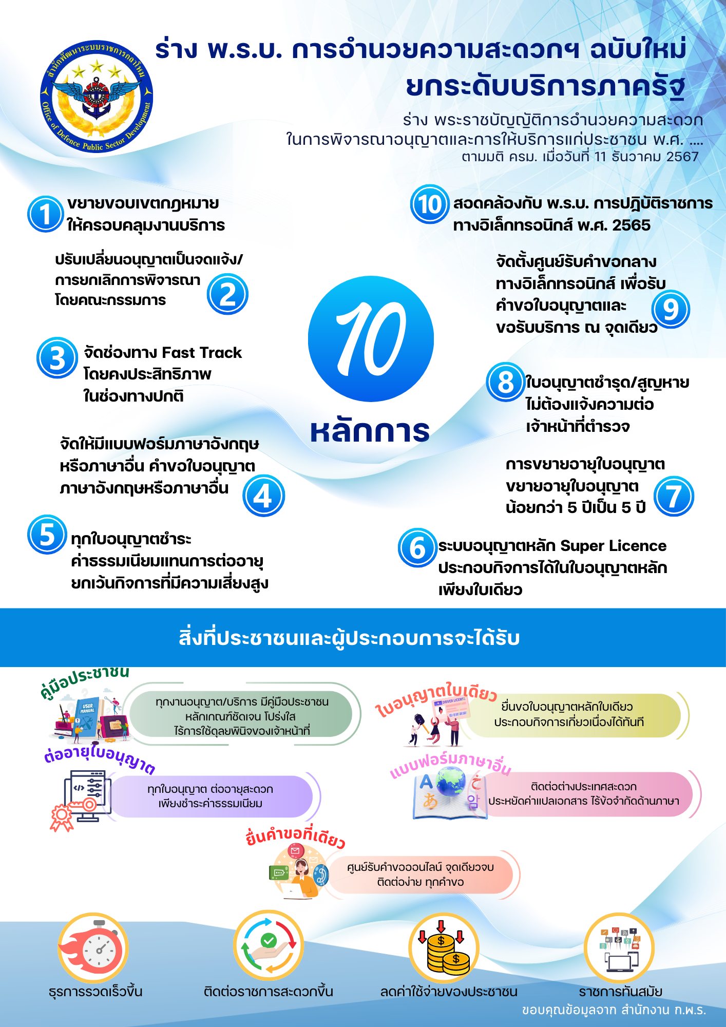 สำนักงานปลัดกระทรวงกลาโหม แจ้ง ร่าง พ.ร.บ. การอำนวยความสะดวกฯ ฉบับใหม่ยกระดับบริการภาครัฐ