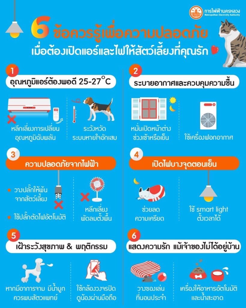 MEA แนะวิธีประหยัดไฟอย่างปลอดภัย ดูแลน้องหมา&น้องเหมียวอย่างสบายใจ สบายกระเป๋า