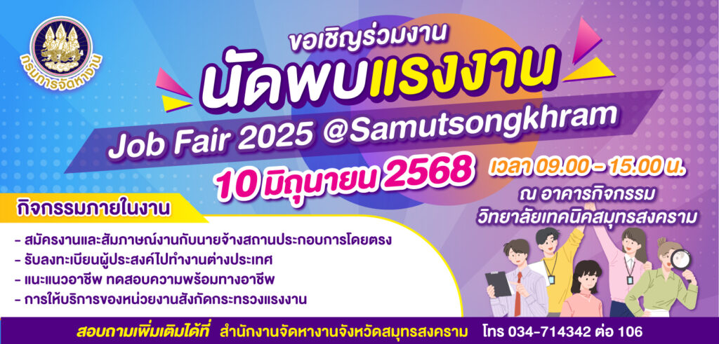 • กรมการจัดหางาน ขอเชิญร่วมงาน นัดพบแรงงาน Job Fair 2025 @สมุทรสงคราม