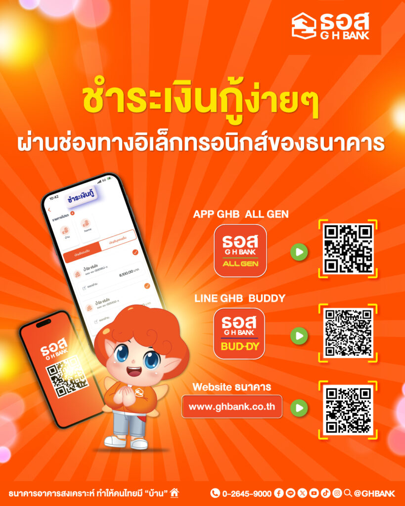 ธนาคารอาคารสงเคราะห์ แนะนำช่องการชำระเงินกู้ผ่านทางอิเล็กทรอนิกส์ของธนาคาร