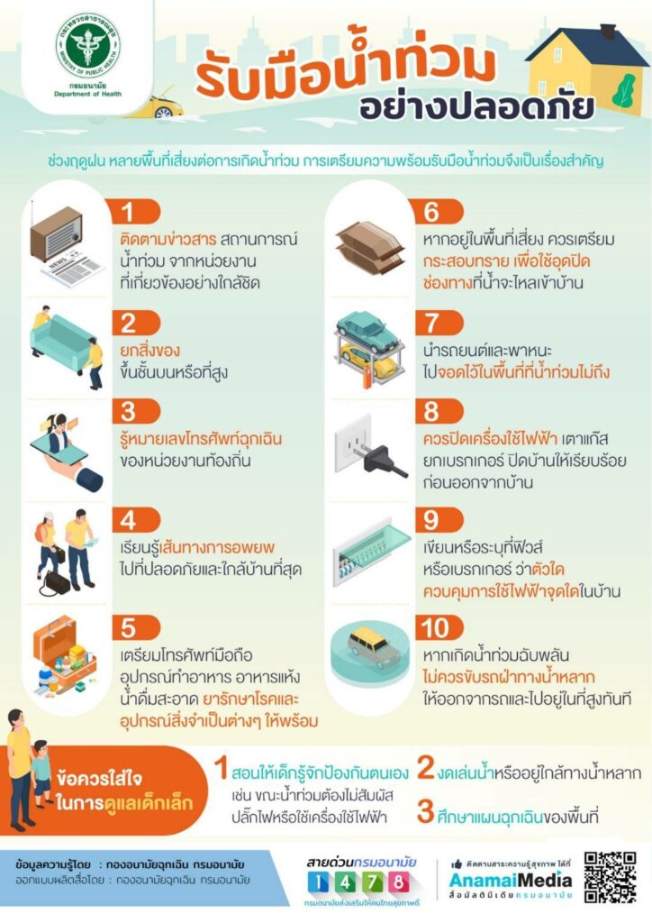 กรมอนามัย แนะนำช่วงฤดูฝนนี้หลายพื้นที่เสี่ยงต่อการเกิดน้ำท่วม การเตรียมความพร้อมรับมือน้ำท่วมจึงเป็นเรื่องสำคัญ