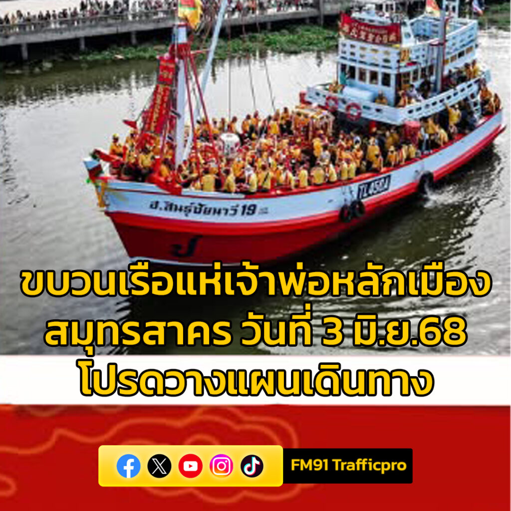 - มีขบวนเรือแห่เจ้าพ่อหลักเมืองสมุทรสาคร โปรดหลีกเลี่ยง ใช้เส้นทางเรืออย่างมีสติ และเฝ้าระวังเพื่อความปลอดภัยของทุกคน