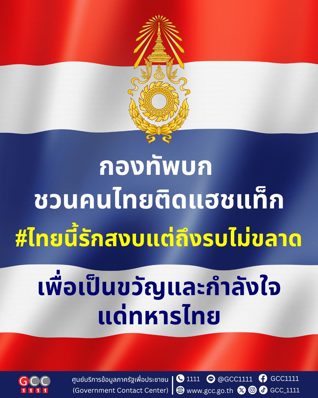 กองทัพบก เชิญชวนคนไทยติดแฮชแท็ก #ไทยนี้รักสงบแต่ถึงรบไม่ขลาด เพื่อเป็นขวัญและกำลังใจแด่ทหารไทย